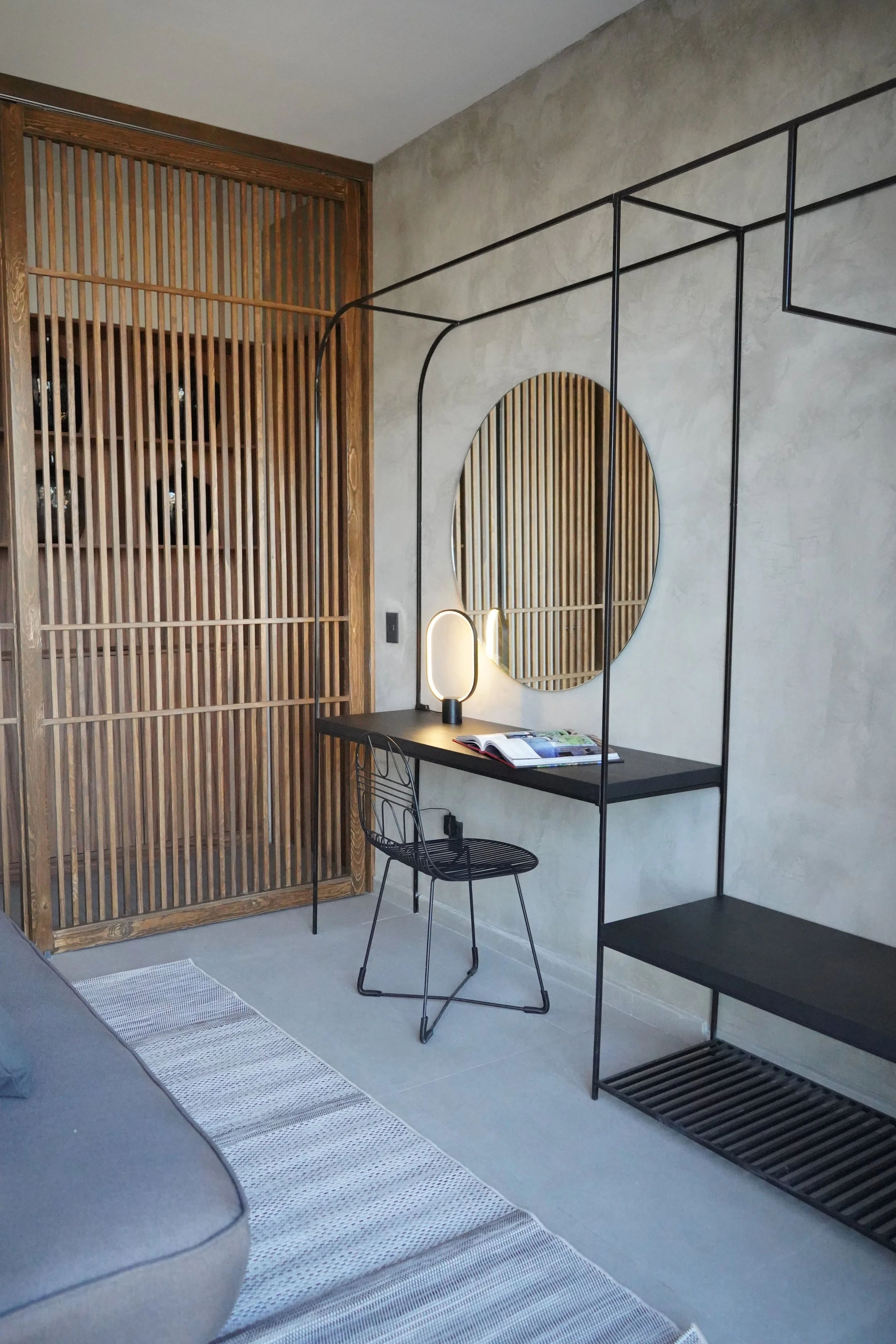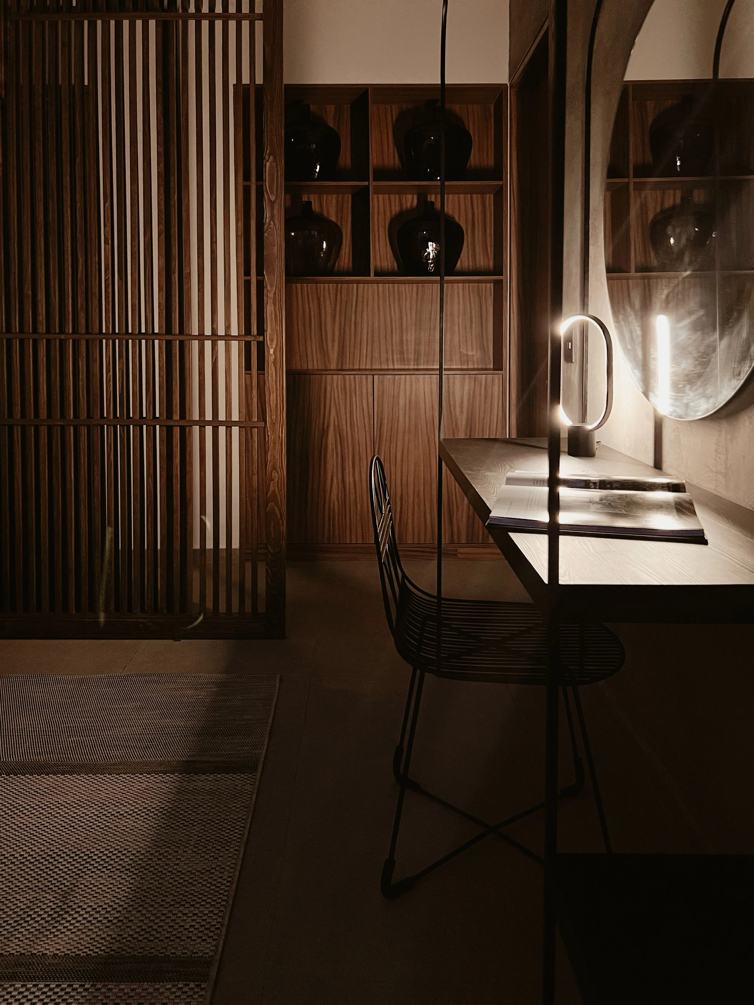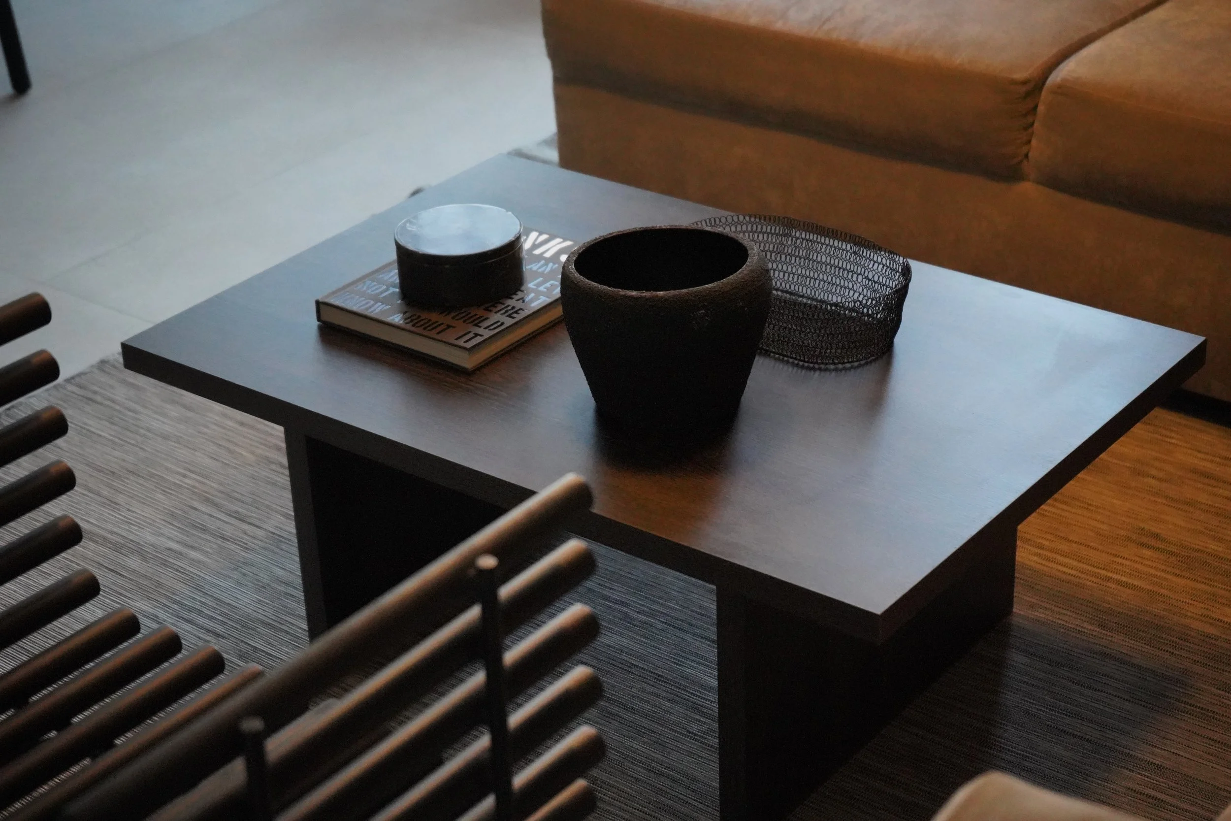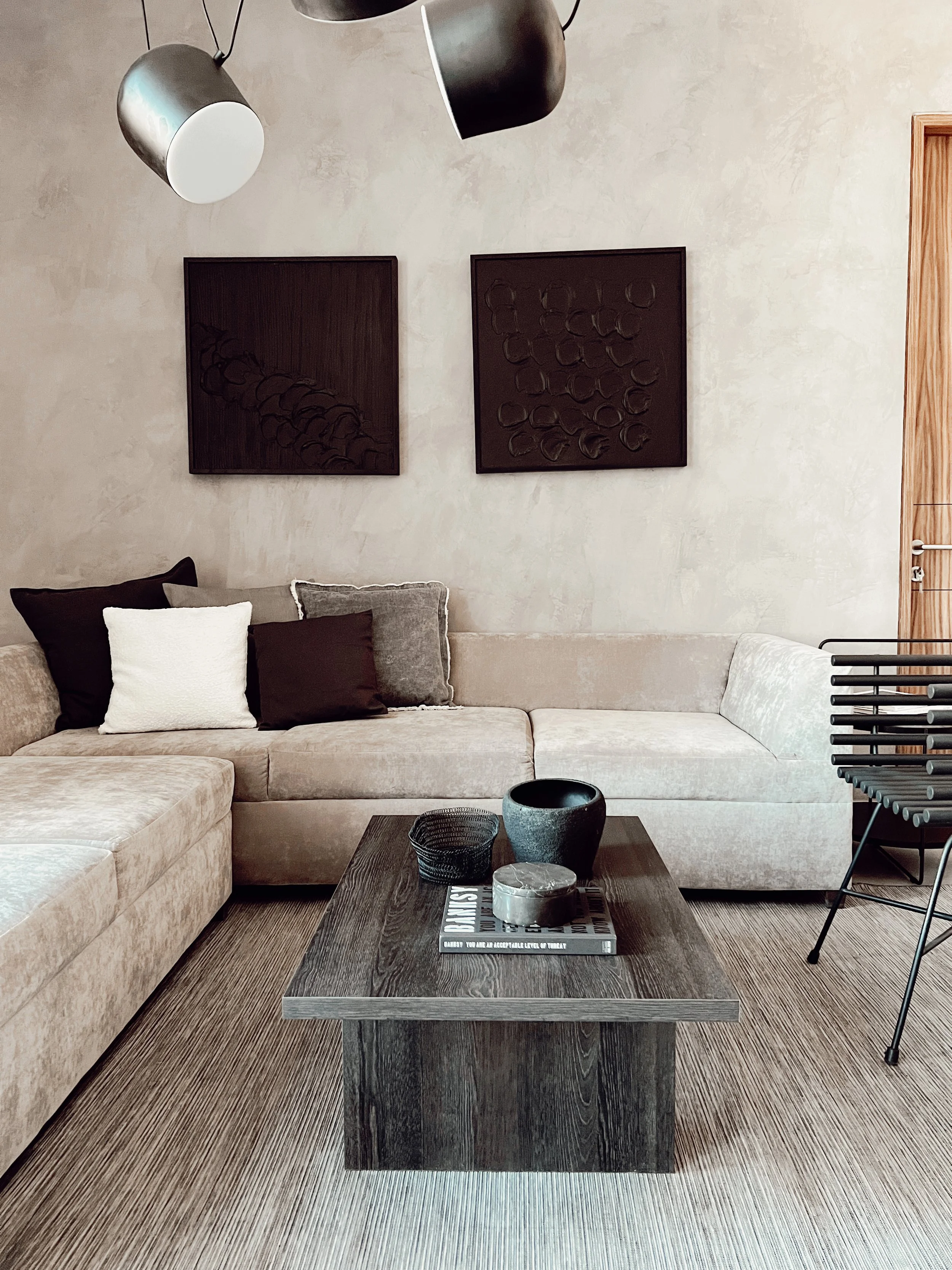 En una paleta de colores neutra y obscura buscamos crear balance entre materiales naturales, texturas orgánicas y maderas en diferentes tonos.
