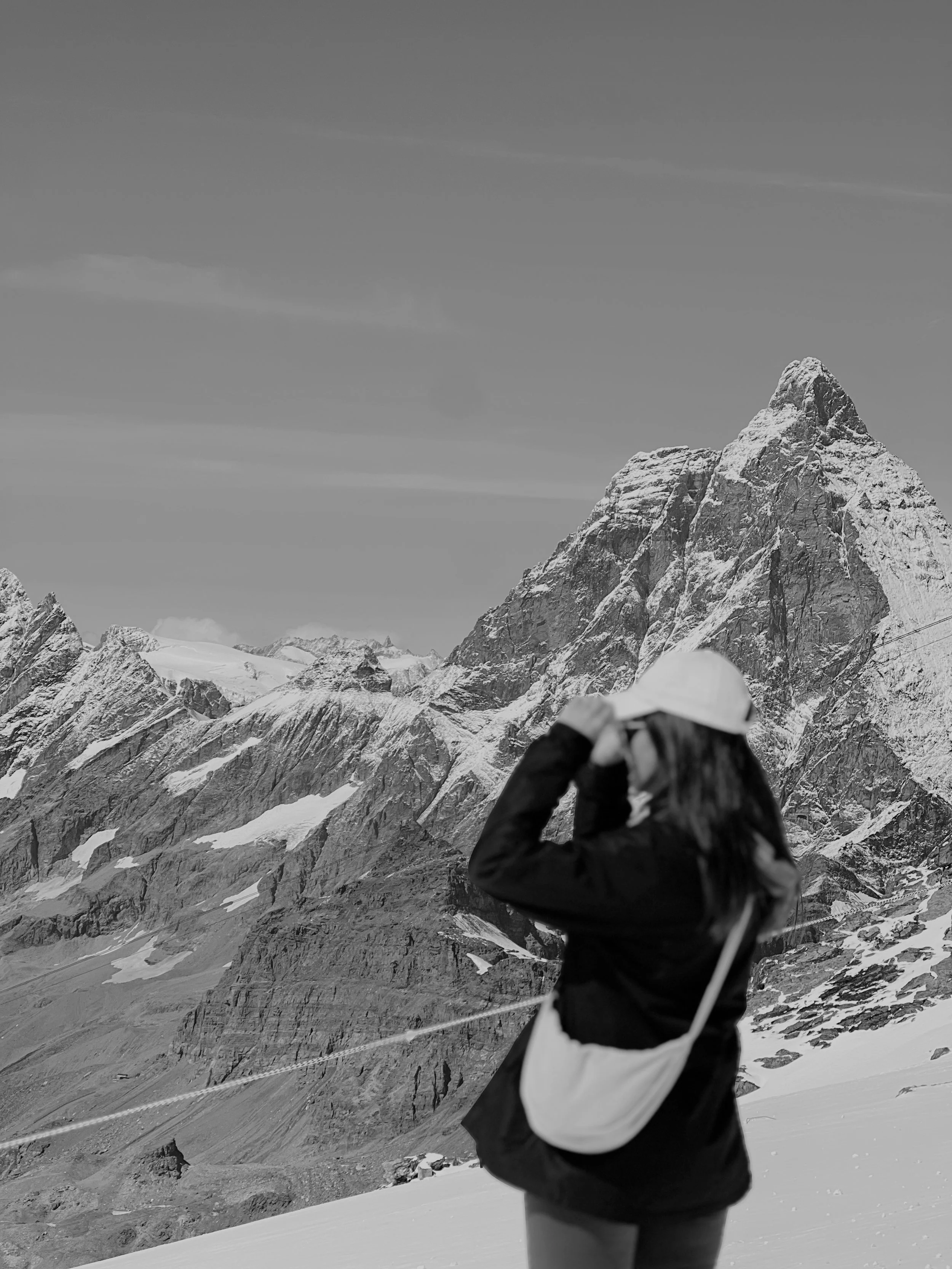 “Estábamos en Zermatt, un día nublado, rumbo al lift para subir a la montaña. De repente, al cruzar un puente, volteamos y vimos la punta de la emblemática Matterhorn completamente despejada. Aproveché ese instante para sacar mi cámara, sabiendo que el clima en la zona puede cambiar en un segundo. Esta montaña, que por años ha sido la imagen de los famosos chocolates suizos, marca la frontera con Italia, siendo uno de los símbolos más icónicos de Suiza.”